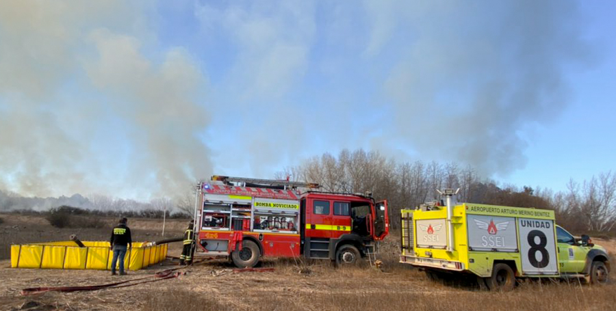 Zanjas tipo trincheras evitaron que el fuego se propagara a un sector más amplio del área cercano al cabezal norte del aeropuerto Nuevo Pudahuel.