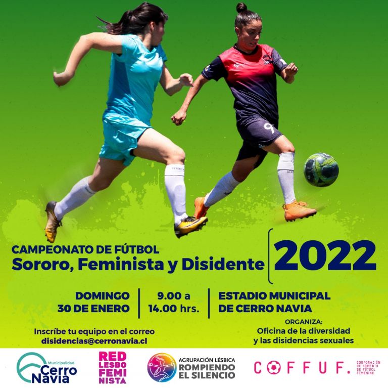 En este marco es que desde la Oficina de las Diversidades y Disidencias Sexuales y Corporación del Deporte de la Municipalidad de Cerro Navia, está organizando el campeonato de fútbol denominado “Sororo, Feminista y Disidente 2022”.