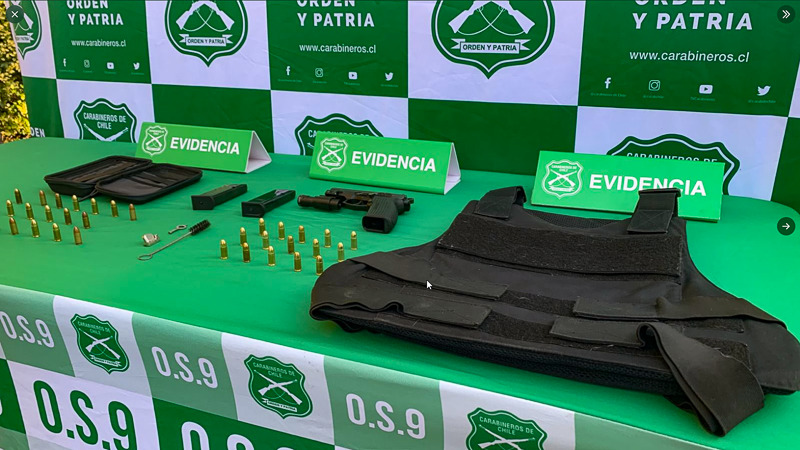 Una pistola de alto poder de fuego, 31 proyectiles, dos cargadores de munición y un chaleco antibala, son sacados de circulación con la detención de un sujeto por Carabineros.