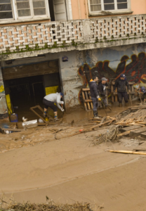 La solidaridad vino del propio vecindario, algunos con pala, otros con maquinaria y hasta olla común, hubo en apoyo de la gente damnificada y voluntarios que se unieron al despeje de un tramo de las calles interiores y viviendas que resultaron dañadas por la acumulación de barro en su interior.